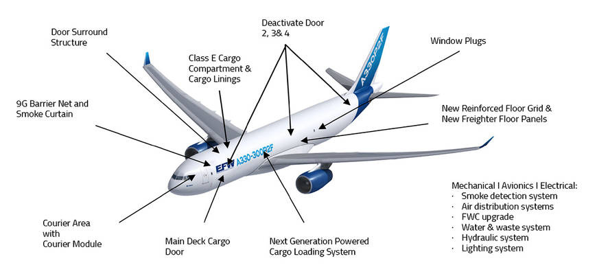 Az átalakításokat az Airbus és a szingapuri leányvállalatának (ST Aerospace) cége a német Elbe Flugzeugwerke végzi.